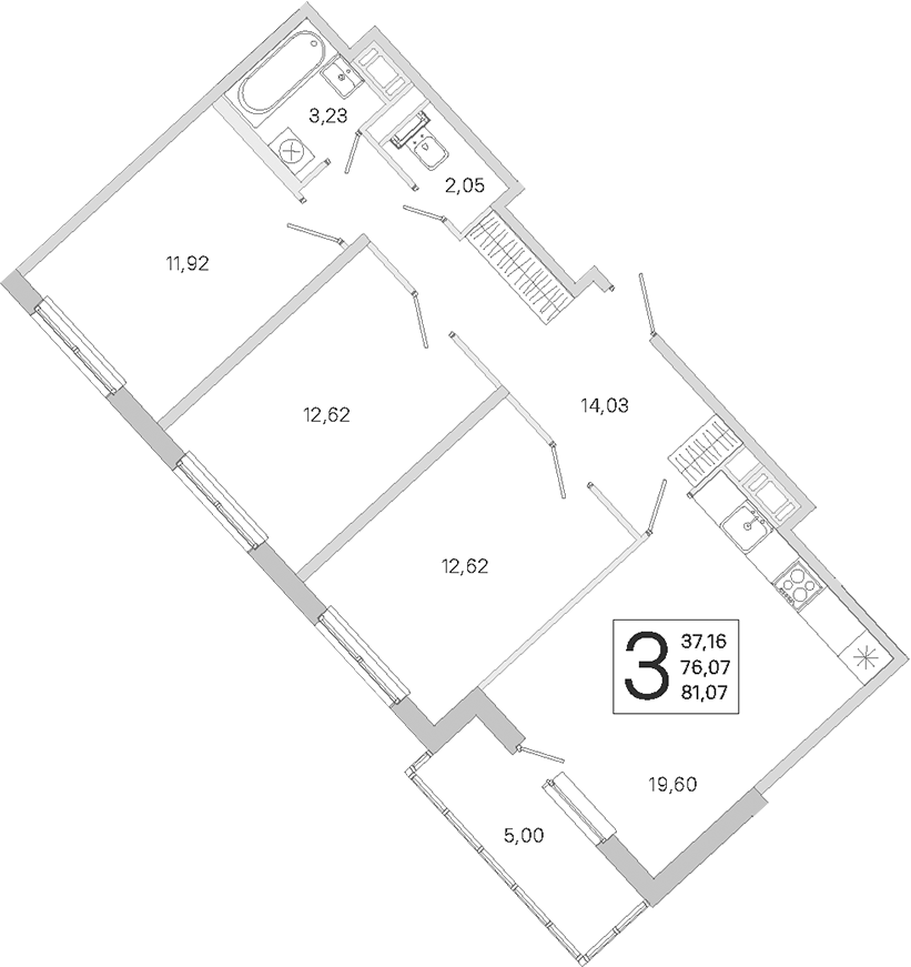 - Площадь76,07 м2