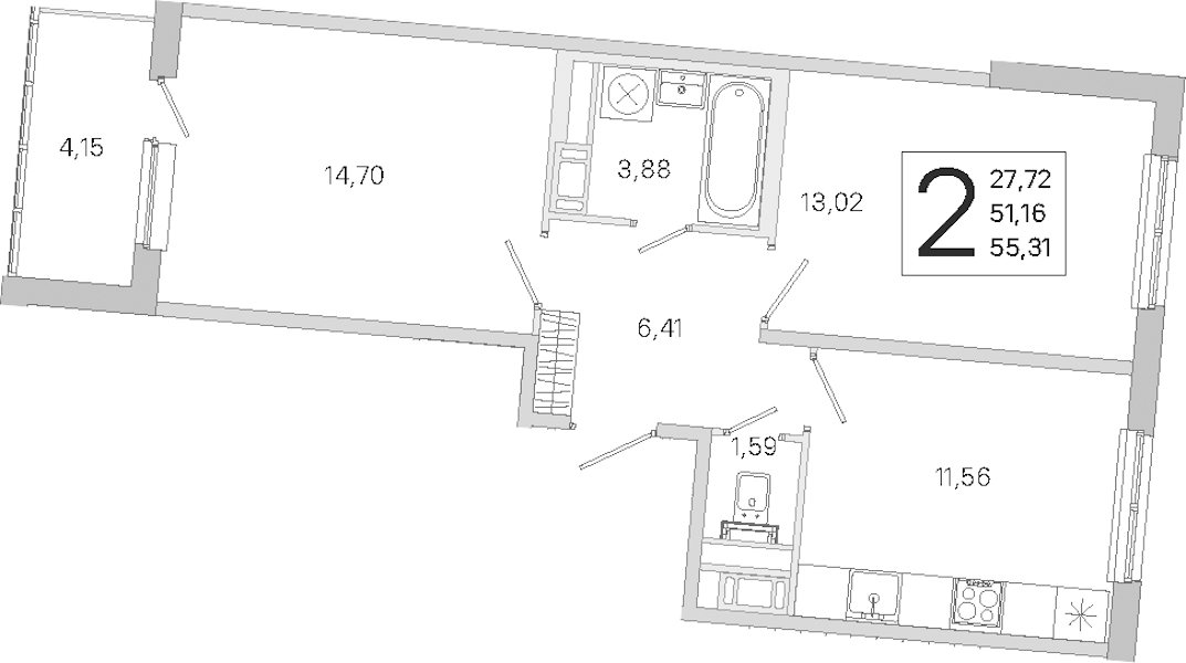 • Площадь51,16 м2