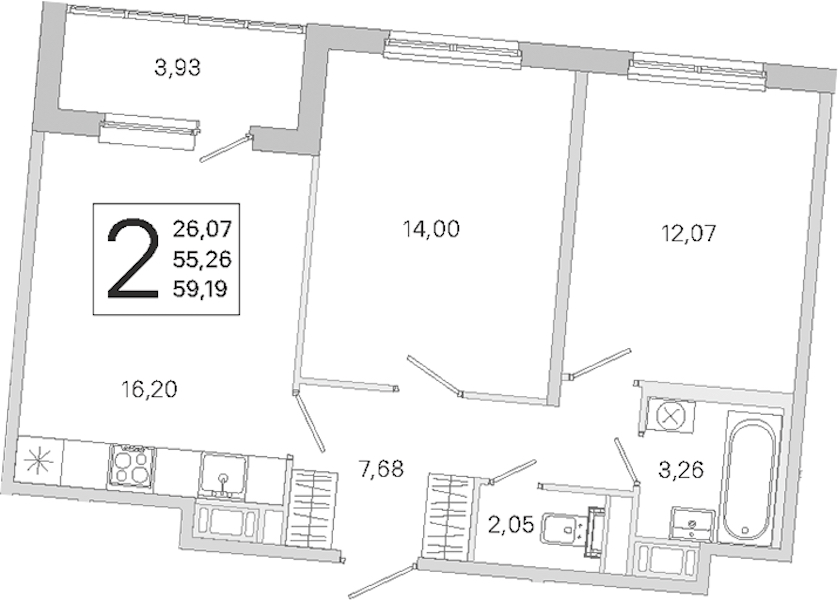 • Площадь55,26 м2