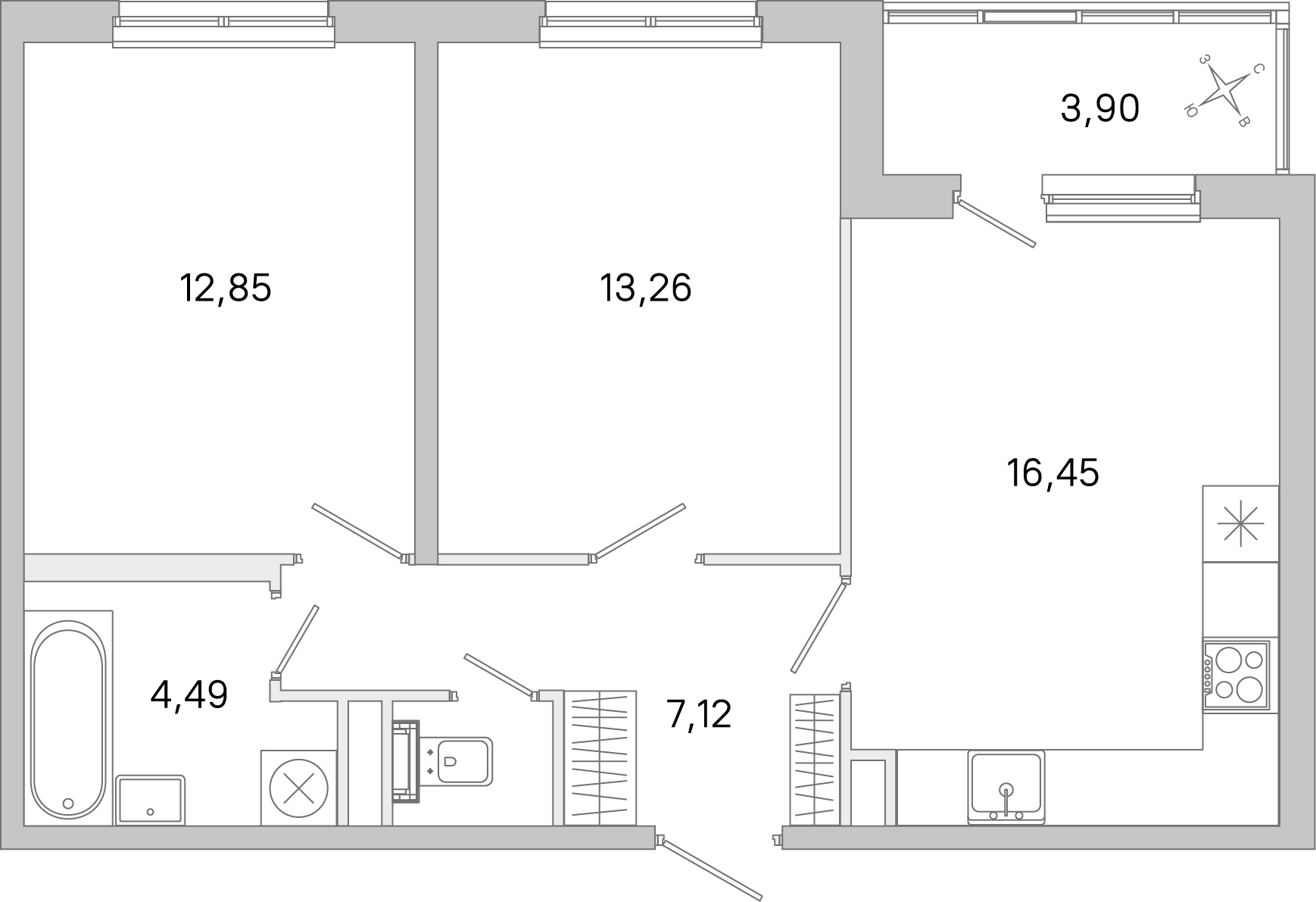 Двухкомнатная квартира на 1-ом этаже 55,83 кв.м