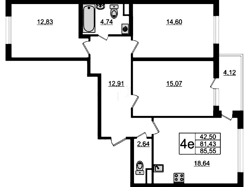 Трёхкомнатная квартира на 1-ом этаже 81,43 кв.м