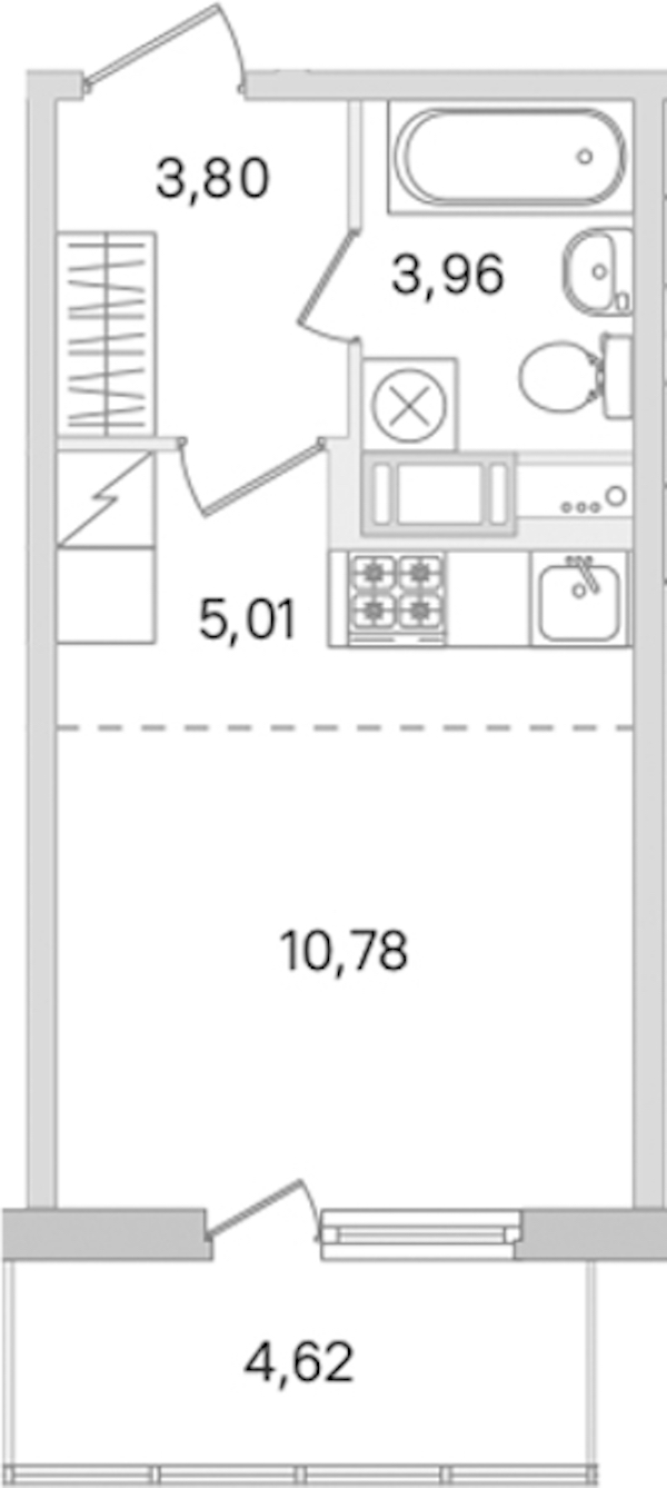 Квартира-студия на 8-ом этаже 23,55 кв.м
