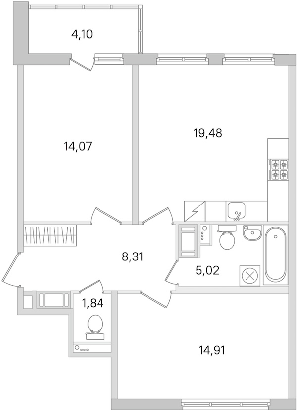 - Площадь кухни19,48 м2