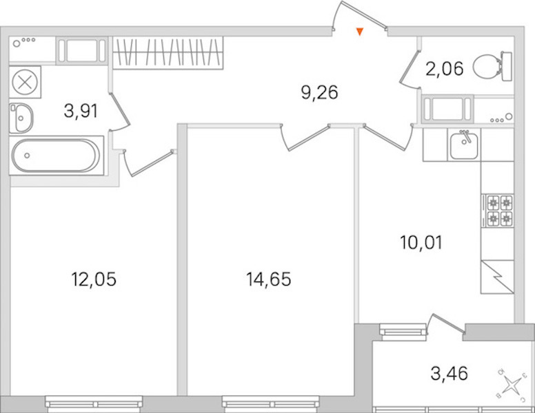 Двухкомнатная квартира на 3-ем этаже 51,94 кв.м
