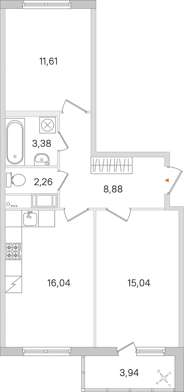 Двухкомнатная квартира на 3-ем этаже 57,21 кв.м