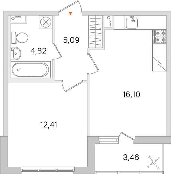 Однокомнатная квартира на 1-ом этаже 38,42 кв.м