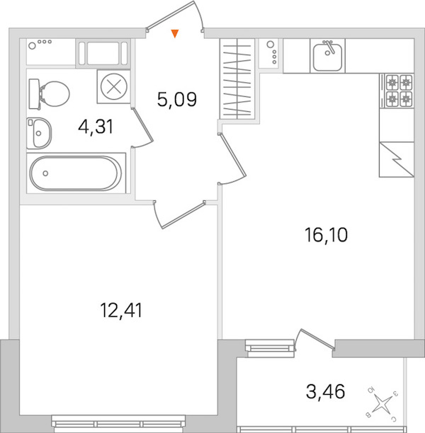 Однокомнатная квартира на 2-ом этаже 37,91 кв.м