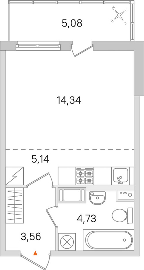 Квартира-студия на 3-ем этаже 27,77 кв.м