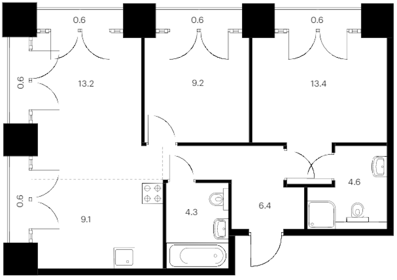 - Площадь63,2 м2
