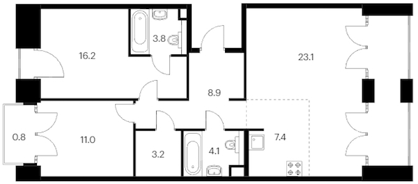 Двухкомнатная квартира на 7-ом этаже 80,6 кв.м