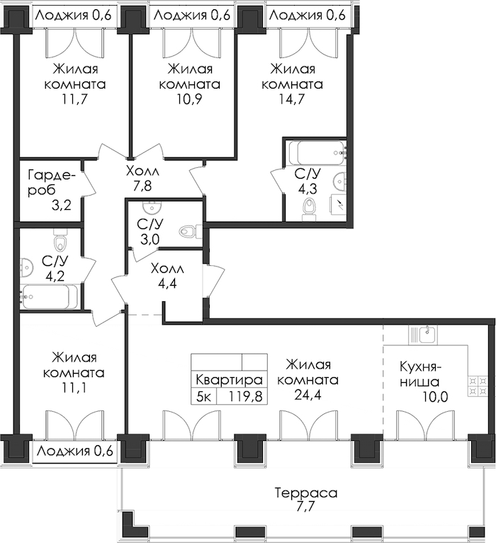 • Площадь119,8 м2