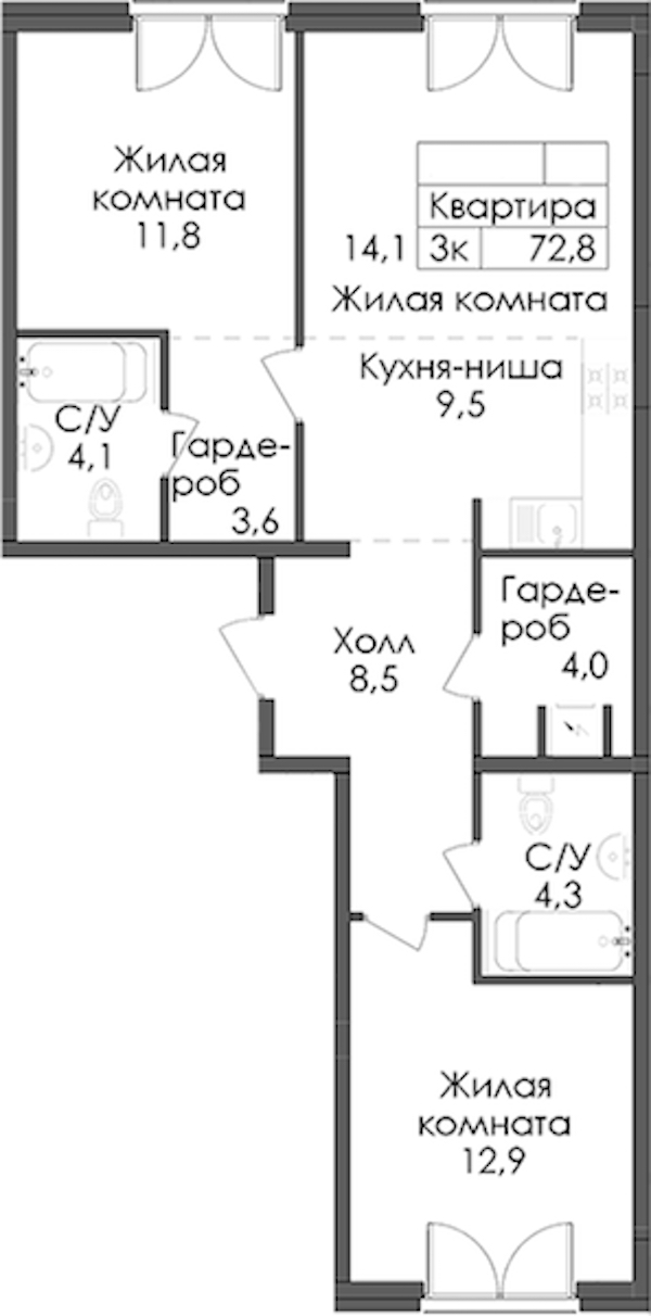 Выше представлены не все варианты квартир, а только часть популярных планировок. Введите данные и получите под ваш запрос планировки, цены, виды из окон и полную информацию по всем подходящим вариантам. 1/5