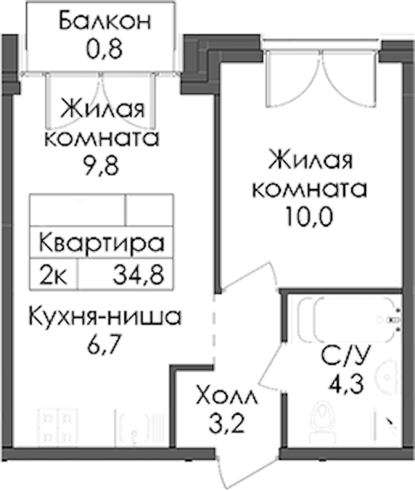 • Площадь34,8 м2