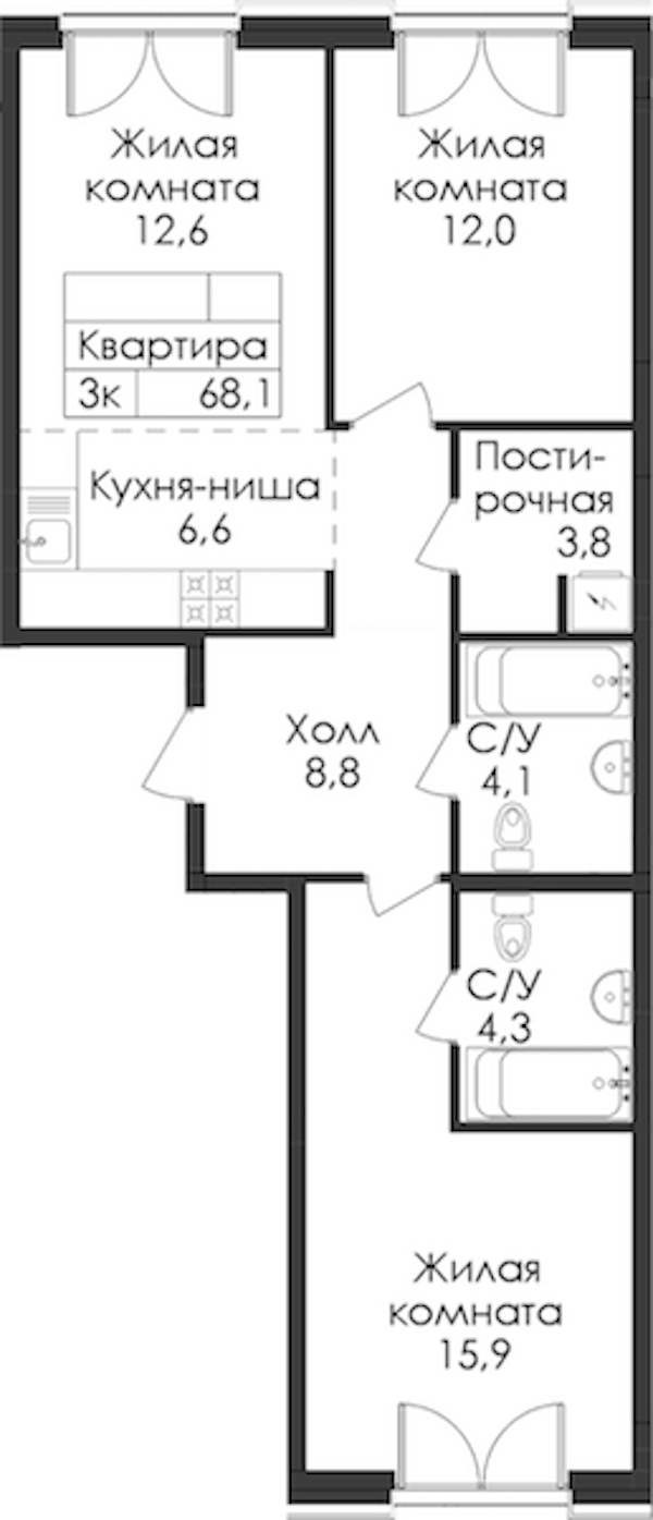 - Площадь68,1 м2