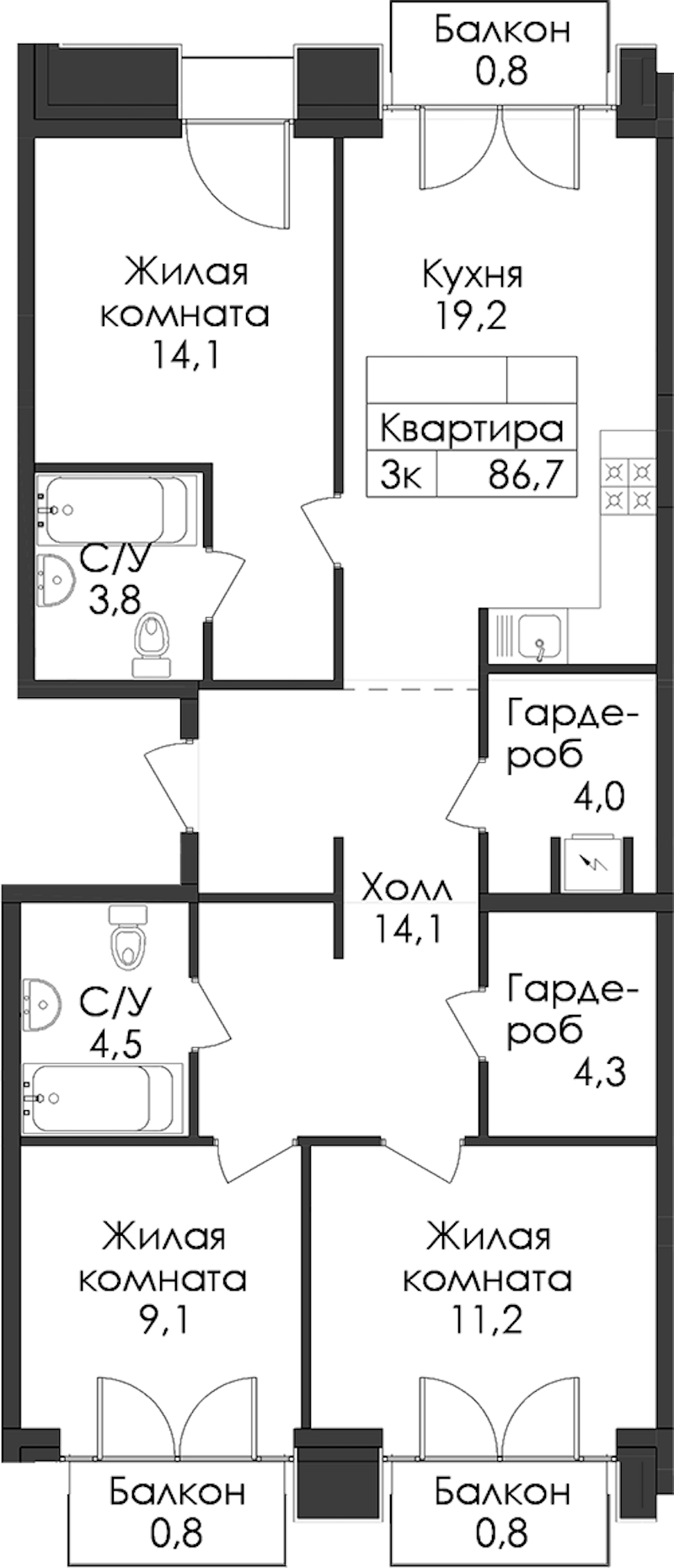 • Площадь86,7 м2