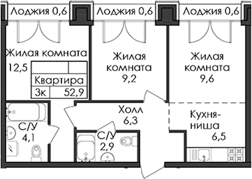 • Площадь52,9 м2