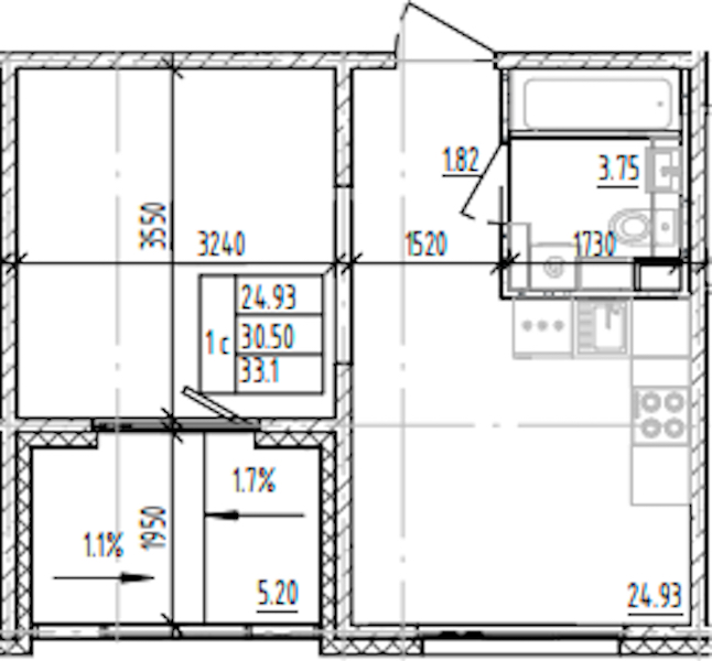 - Площадь33,1 м2
