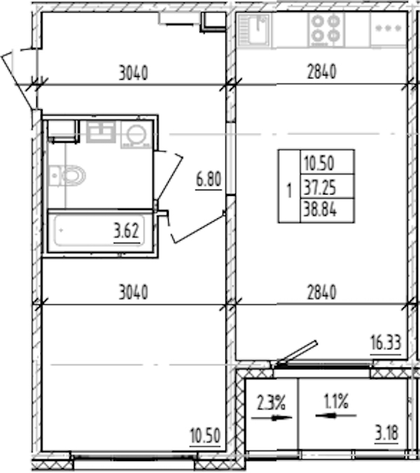 - Площадь38,84 м2