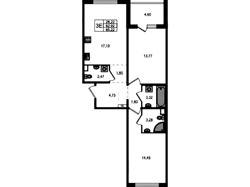 - Площадь65,22 м2
