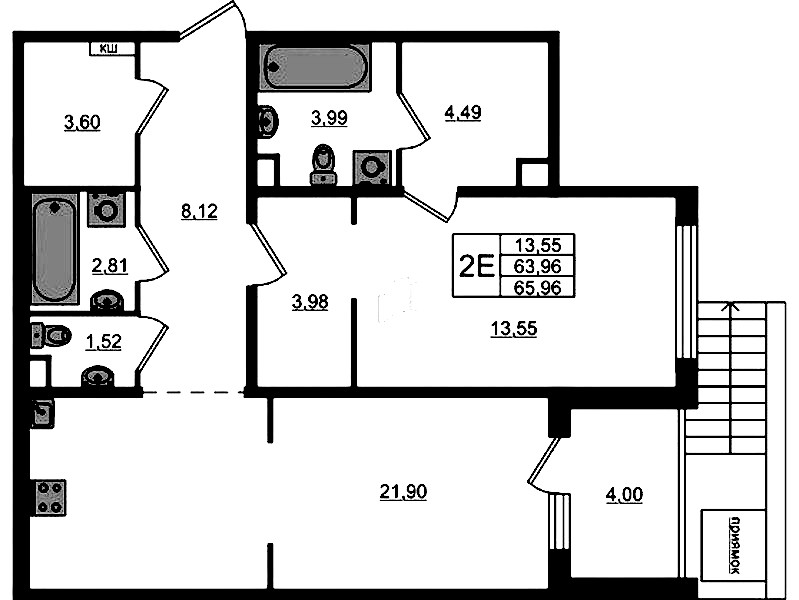 • Площадь65,96 м2