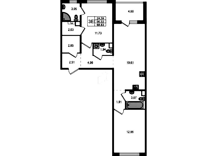 Двухкомнатная квартира на 4-ом этаже 68,83 кв.м