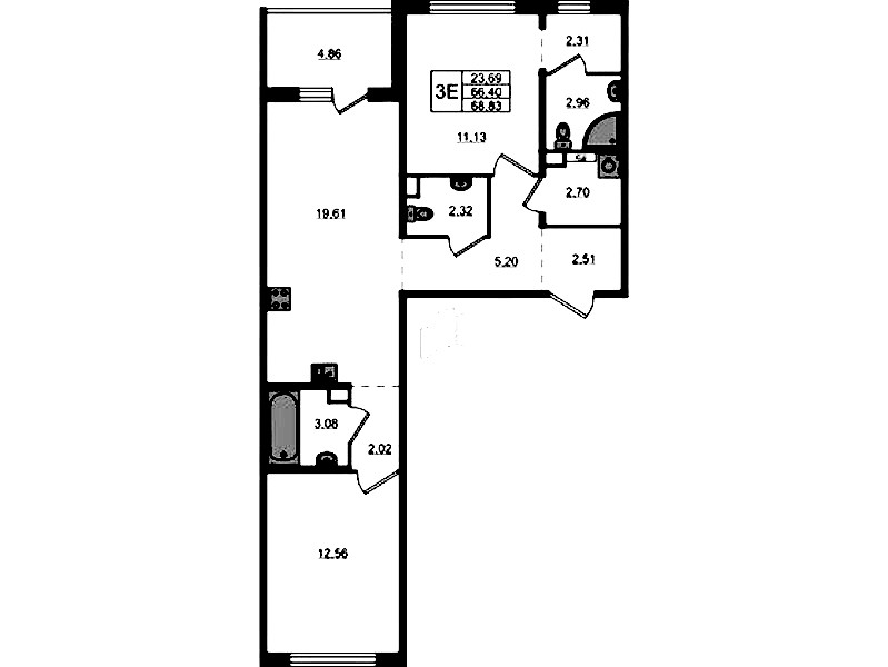 Двухкомнатная квартира на 5-ом этаже 68,83 кв.м