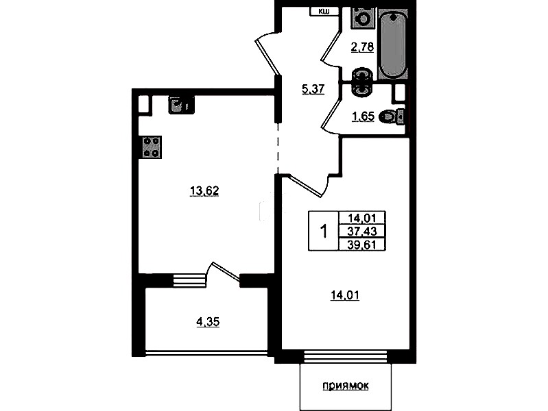 • Площадь39,61 м2