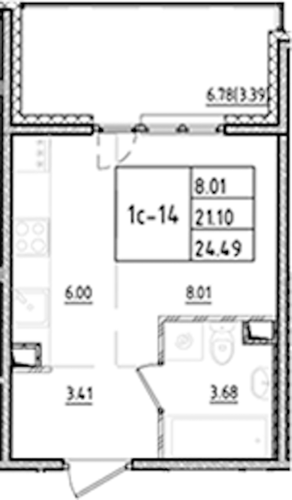 Квартира-студия на 6-ом этаже 24,49 кв.м
