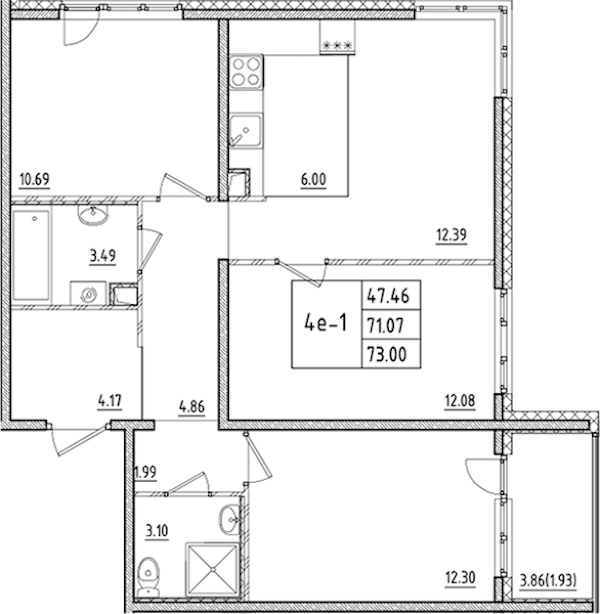 • Площадь73 м2