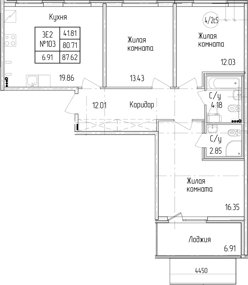 - Площадь80,71 м2