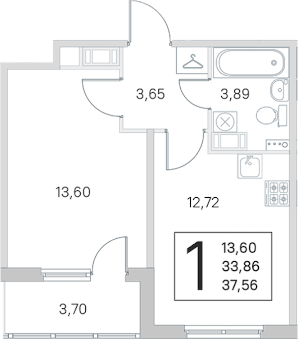 Однокомнатная квартира на 4-ом этаже 33,86 кв.м