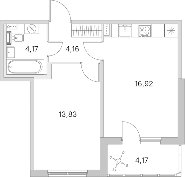 - Площадь кухни16,92 м2