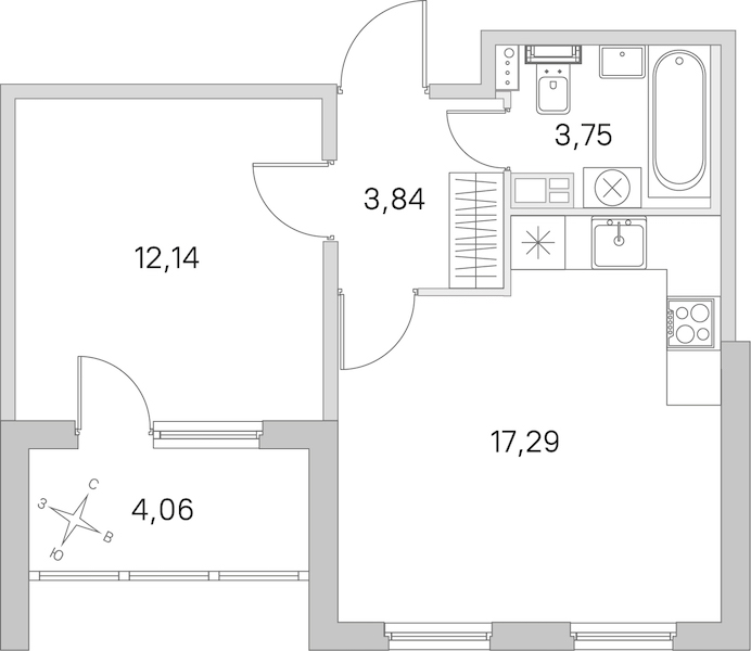 - Площадь кухни17,29 м2