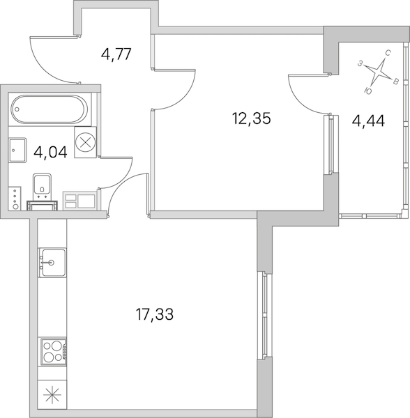 - Площадь кухни17,33 м2