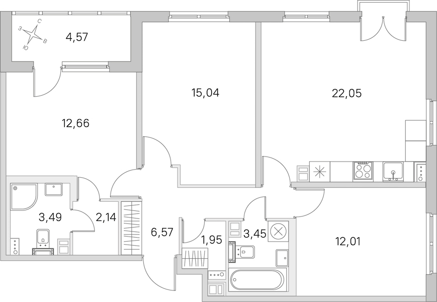 - Площадь кухни22,05 м2