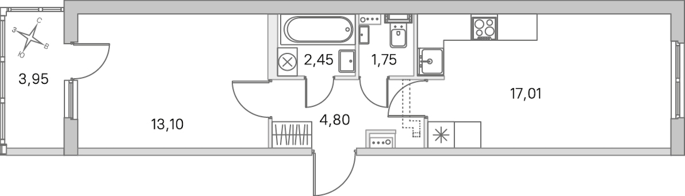 - Площадь кухни17,01 м2
