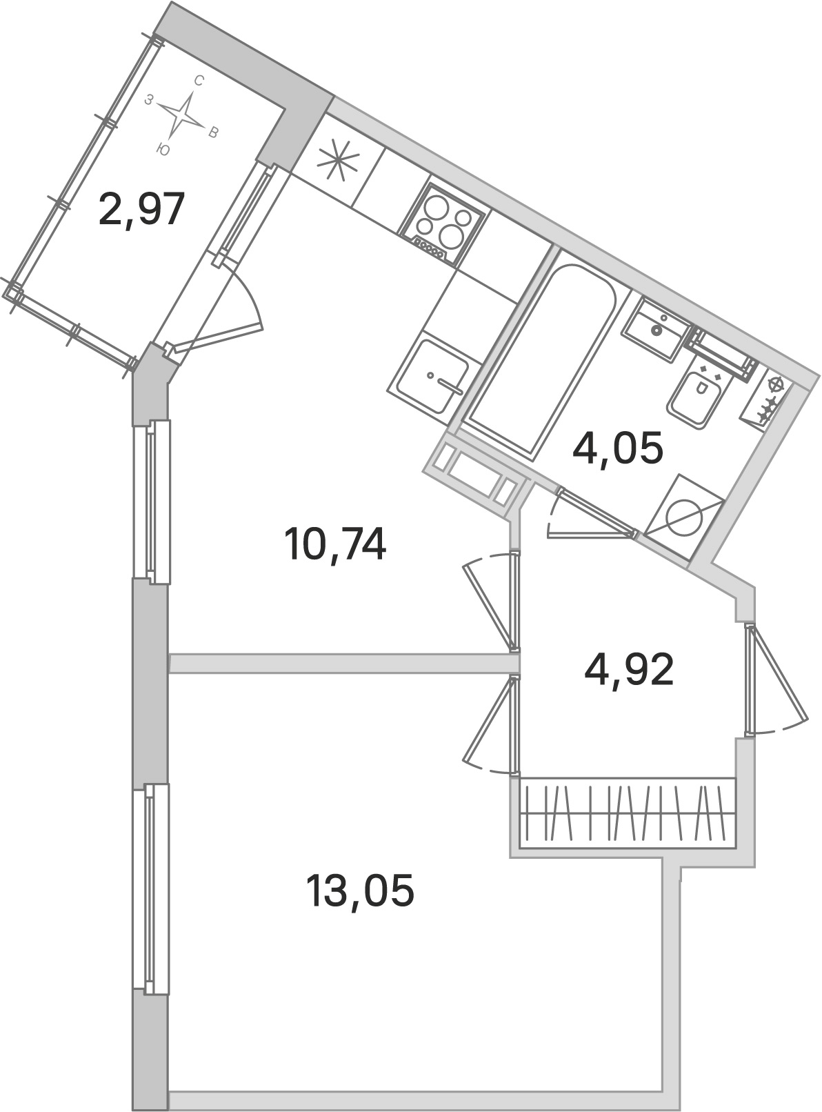- Площадь кухни10,74 м2