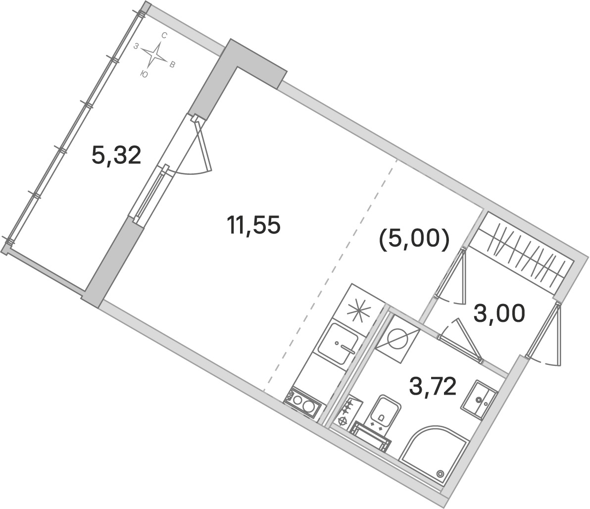 - Количество комнатСтудия