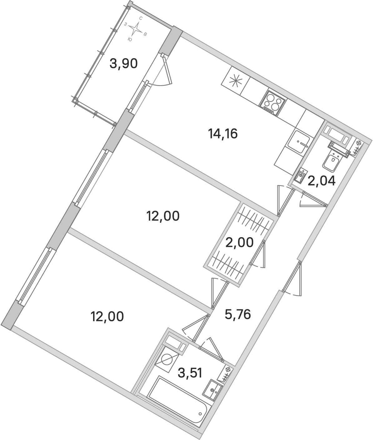 - Площадь кухни14,16 м2