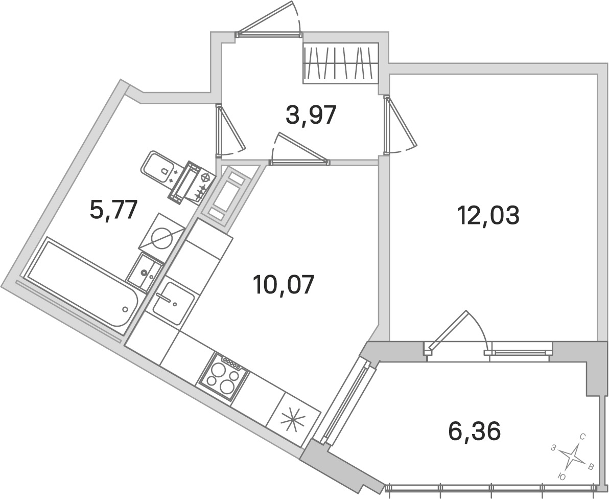 - Площадь кухни10,07 м2