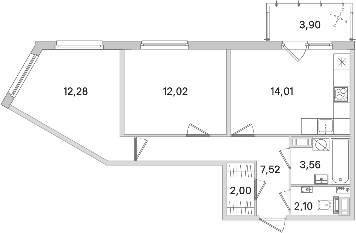 - Площадь кухни14,01 м2