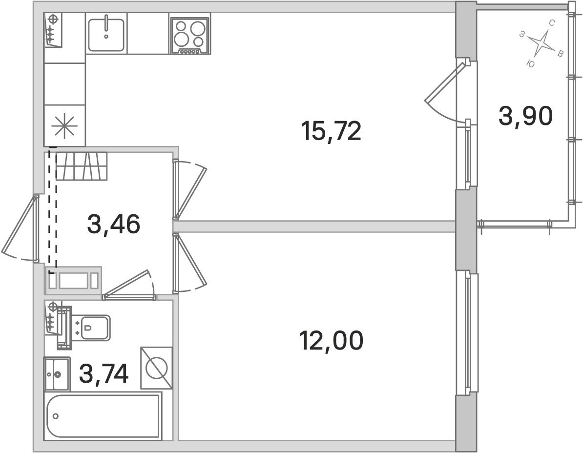 Однокомнатная квартира на 4-ом этаже 34,92 кв.м