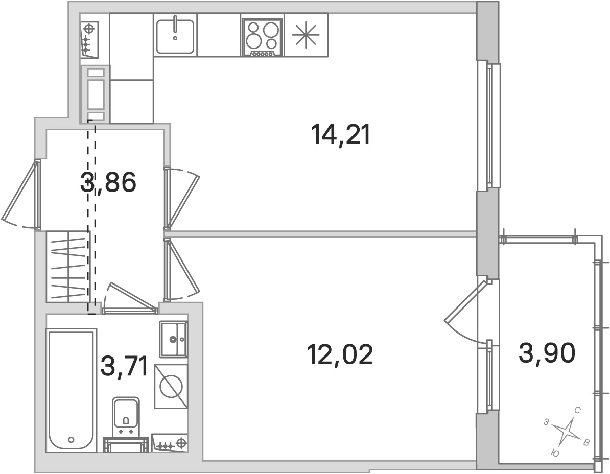 • Площадь кухни14,21 м2