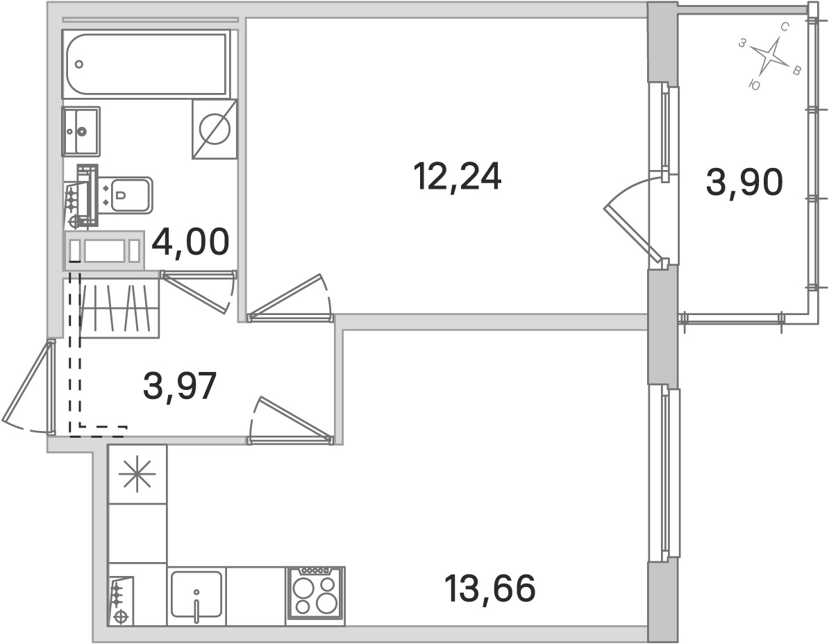 • Площадь кухни13,66 м2