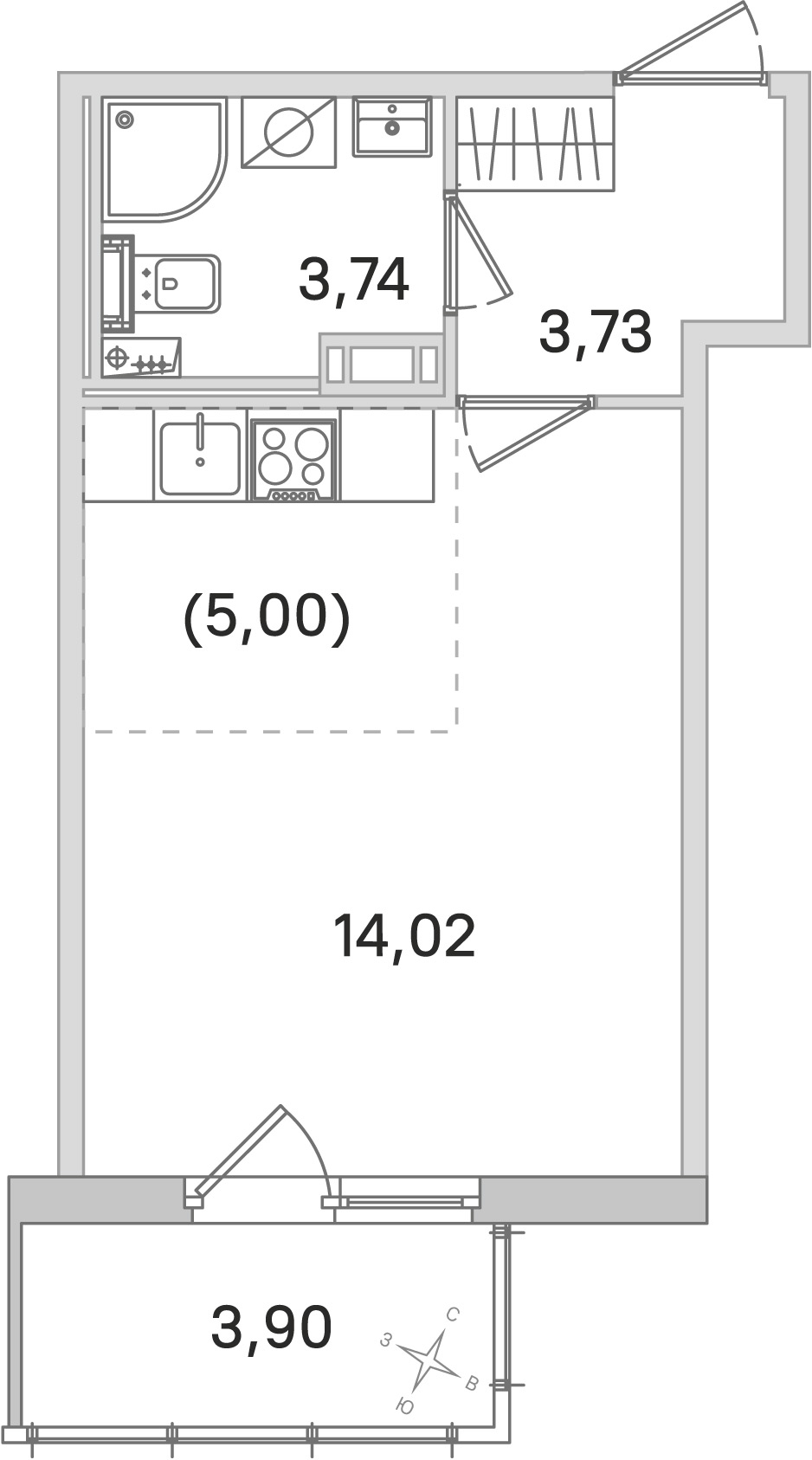 - Количество комнатСтудия