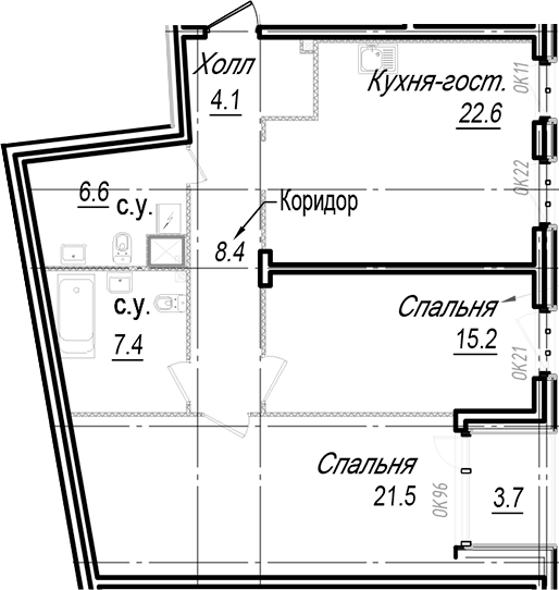 - Площадь кухни22,6 м2