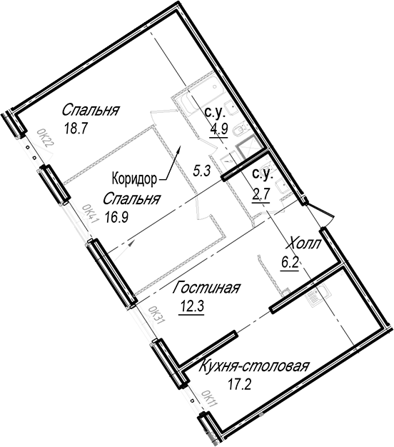 - Количество комнат3
