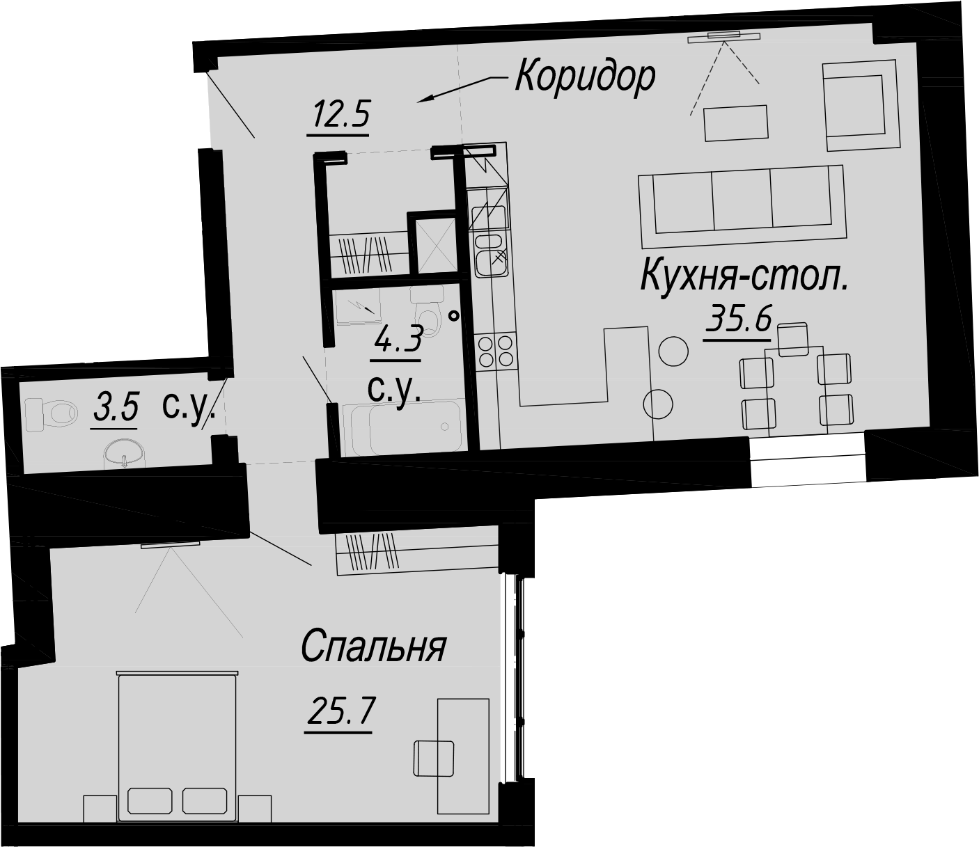 - Площадь кухни35,6 м2