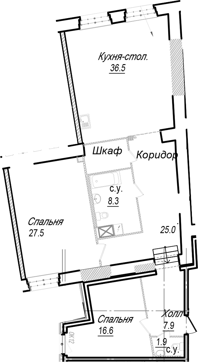- Площадь кухни36,5 м2