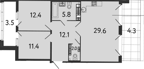 • Площадь кухни29,6 м2